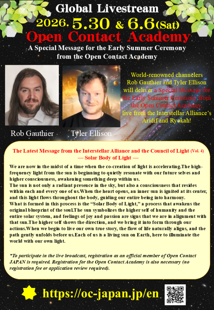 May 30 & June 6, 2026, the Early Summer Ceremony of the Open Contact Academy, presented by the Interstellar Alliance, will be held in Japan and broadcast live worldwide! (Participation fee: PartⅠ ¥14,400 + tax / PartⅡ ¥35,600 + tax)
